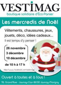 Il est temps d’y penser avec Vestimag, la boutique solidaire d’Éco Panier, qui vous propose des articles à tout petits prix.