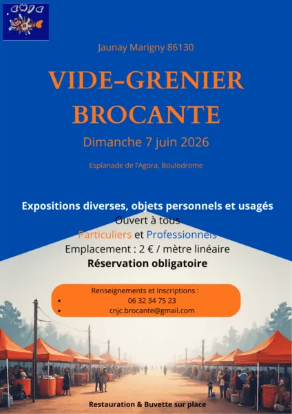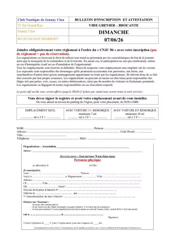 Le Dimanche 7 juin 2026, le Club Nautique de Jaunay organise un vide-greniers
