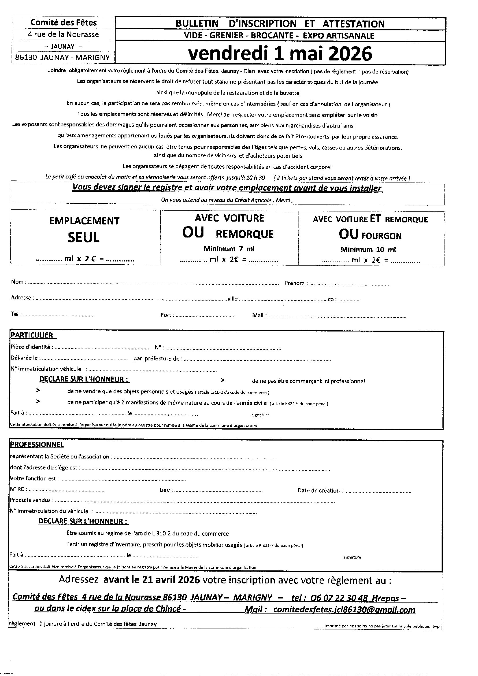 Vide-greniers du Comité des Fêtes de Jaunay